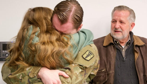 In mid-December that family reunion came to fruition, albeit with a twist. Konczal’s parents were told to arrive at the Red Cross chapter office in Fairfax, VA, with what they thought was a volunteer effort to prepare holiday greeting cards for patients at local military hospitals. But they and their daughter walked through the facility’s doors to find Konczal, resulting in an emotional scene and heavy embrace.