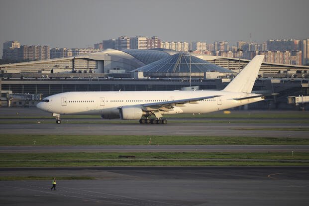 Russia's Nordwind Airlines Boeing 777-200ER taxies before taking off on the first flight connecting Moscow and Pyongyang at Moscow's Sheremetyevo International Airport, amidst warming relations between Russia and North Korea, outside Moscow, Russia, on Sunday, July 27, 2025. (AP Photo)