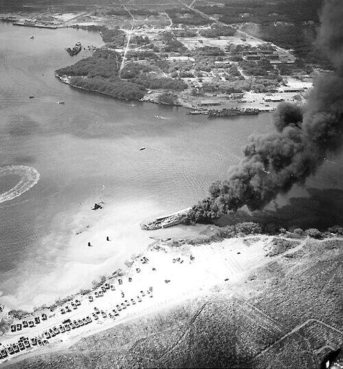 The second explosion struck three minutes later at 3:11 p.m. Gasoline drums on multiple ships detonated simultaneously. Flames engulfed men and machinery across the staging area. Burning fragments rained down throughout West Loch. Harbor surface fires spread as more fuel leaked from the damaged vessels.