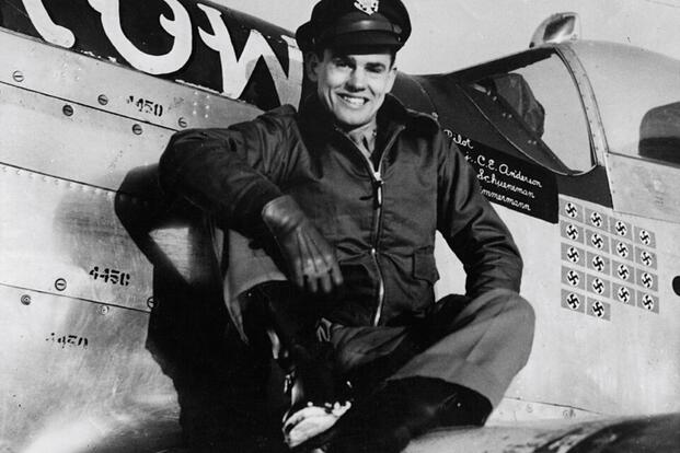 He named every Mustang he flew "Old Crow," after the Kentucky bourbon. Anderson completed both tours in those aircraft without once taking fire from an enemy plane or aborting a mission.