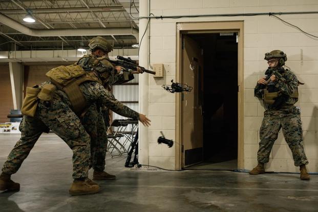 U.S. Marines with the Marine Corps Attack Drone Team, Weapons Training Battalion, Training Command, conduct the close quarters combat portion of the National Drone Association Drone Crucible in Florida, Sept. 19, 2025. (U.S. Marine Corps photo by Cpl. Joshua Barker)