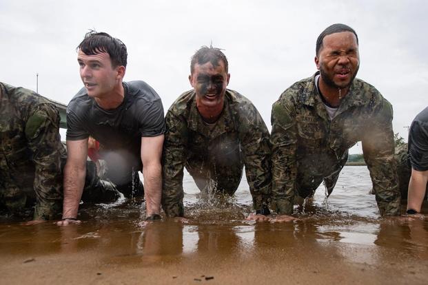 U.S. Naval Academy midshipmen take part in the annual Sea Trial on 13 May, 2025. Sea Trials is a capstone event for fourth class (freshman) midshipmen, modeled after the Marine Corps Crucible and the Navy’s Battle Stations (U.S. Air Force photo by Technical Sgt. Christopher S Muncy).