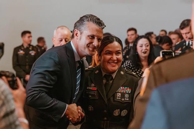 Secretary of Defense Pete Hegseth attends Officer Candidate School Class 501-25 on September 4, 2025, at Fort Benning, Georgia. As the guest speaker, Hegseth delivered a message focused on the enduring importance of standards, character, and decentralized decision-making for the Army's newest second lieutenants. He emphasized that the demanding 12-week OCS "crucible" forged their character, which will lead to hope, and that their profession is unique because "we are in the business of kill or be killed, live or die," making adherence to standards non-negotiable (U.S. Army photo by Capt. Stephanie Snyder).