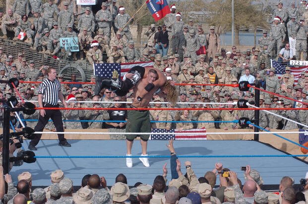 Back in 2007, John Cena stood in the dust of Baghdad, surrounded by service members during a WWE Tribute to the Troops event. He looked them in the eyes and said,
