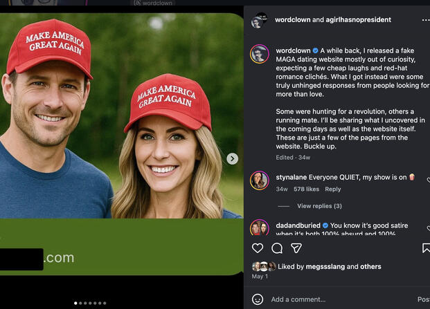 In another Instagram post, he described launching a fake “MAGA dating website” primarily out of curiosity, expecting low-stakes comedy: clumsy taglines, awkward selfies, the usual ideological flirting. Instead, he wrote that he received “truly unhinged responses” from people seeking more than companionship.