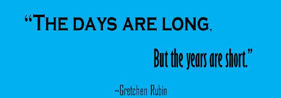 On those days when I feel the hands of the clock are standing still, I remind myself of a quote from Gretchen Rubin, author of the book The Happiness Project: "The days are long, but the years are short."