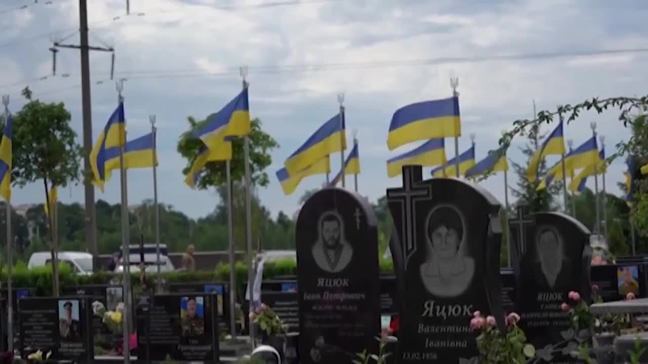 The Ukrainian veteran's gravestone carries his photograph and birthday, but the date Roman Shadlovskyi died is an estimate: March 2022