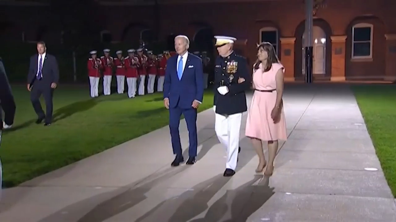 US President Joe Biden attended the Friday Evening Parade at the Marine Barracks in Washington. (June 5) AP