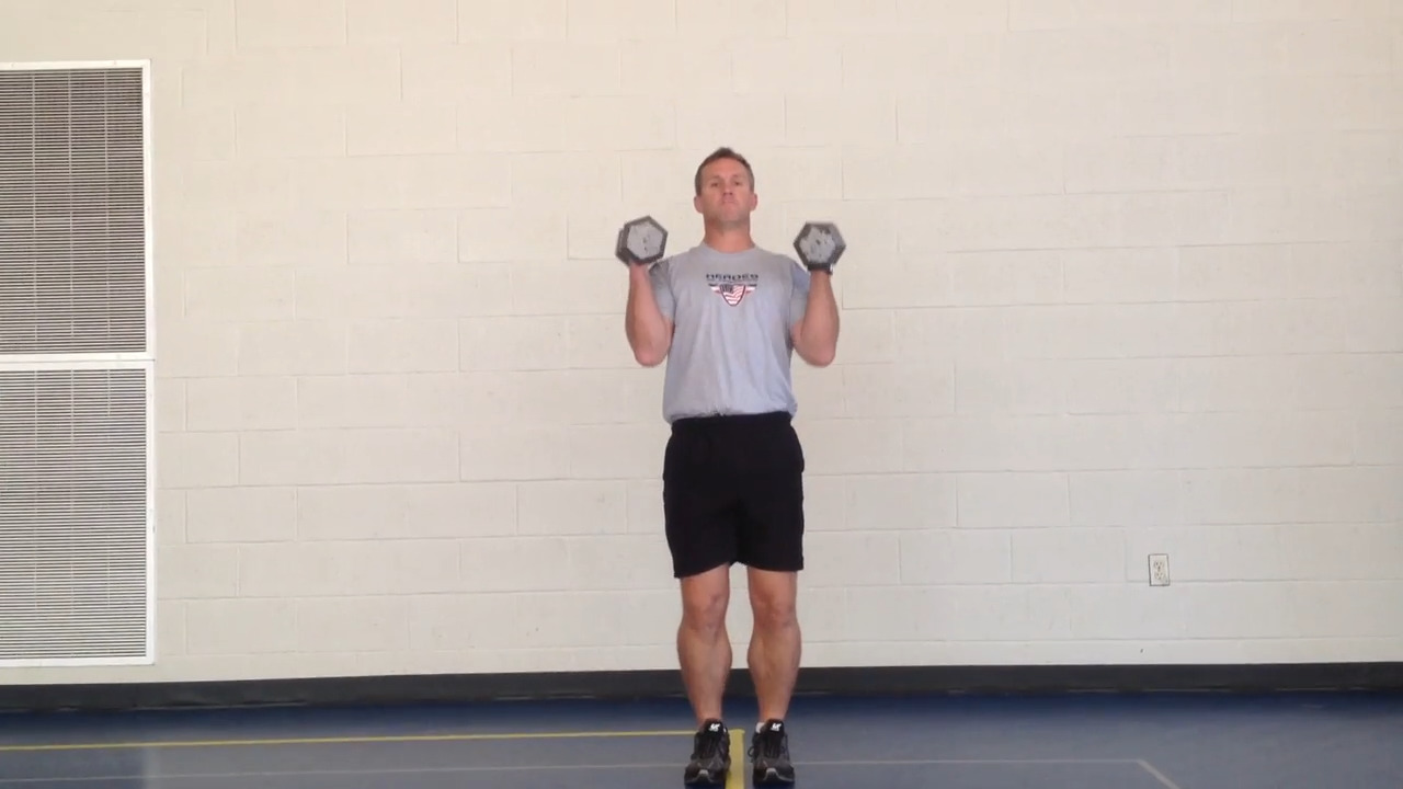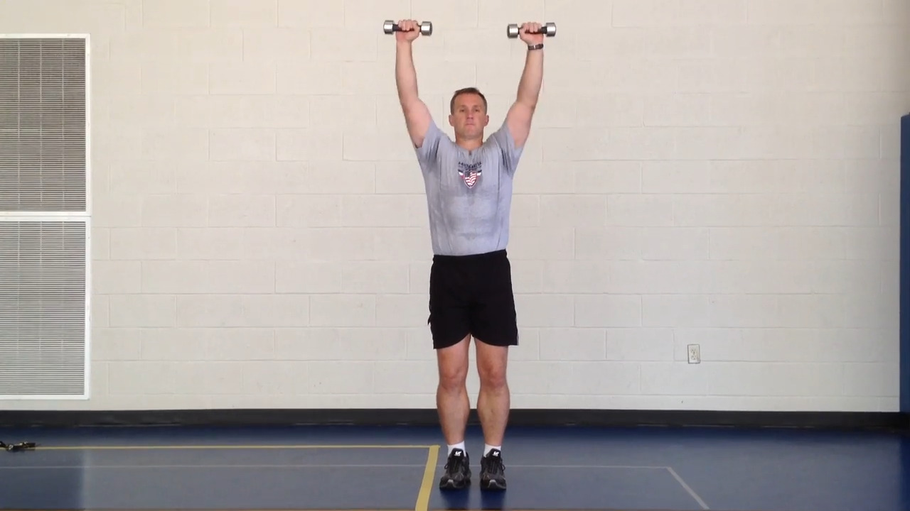 Military.com fitness writer Stew Smith demonstrates the proper form for doing military presses with dumbbells. (Sept. 8) Military.com