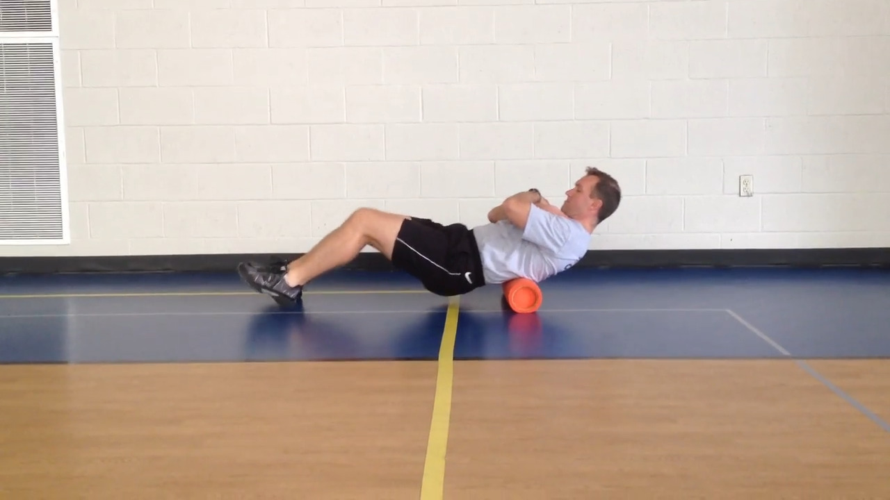 Military.com fitness writer Stew Smith demonstrates the proper form for myofascial release exercises for the back on a foam roller
