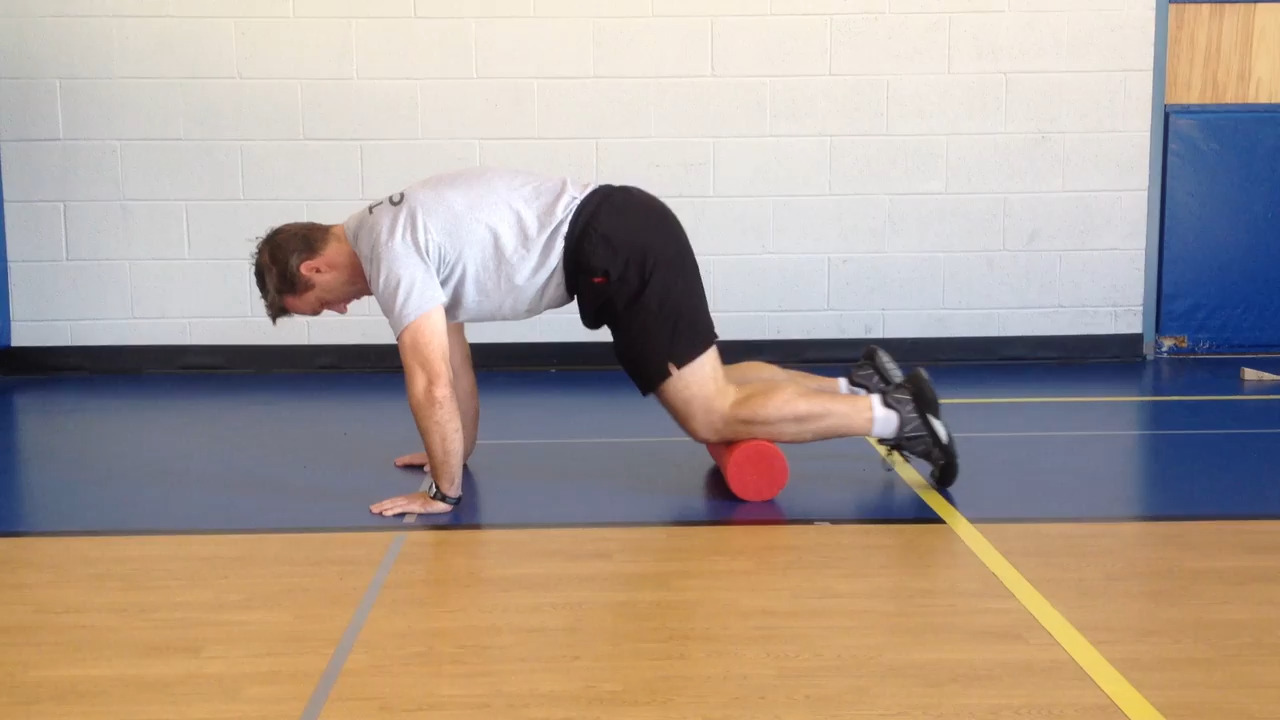 Military.com fitness writer Stew Smith demonstrates the proper form for doing myofascial release shin rolls on a foam roller. (Sept