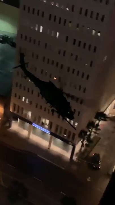 MH-6s fly through downtown L.A. as part of an exercise by the 160th Special Operations Aviation Regiment.