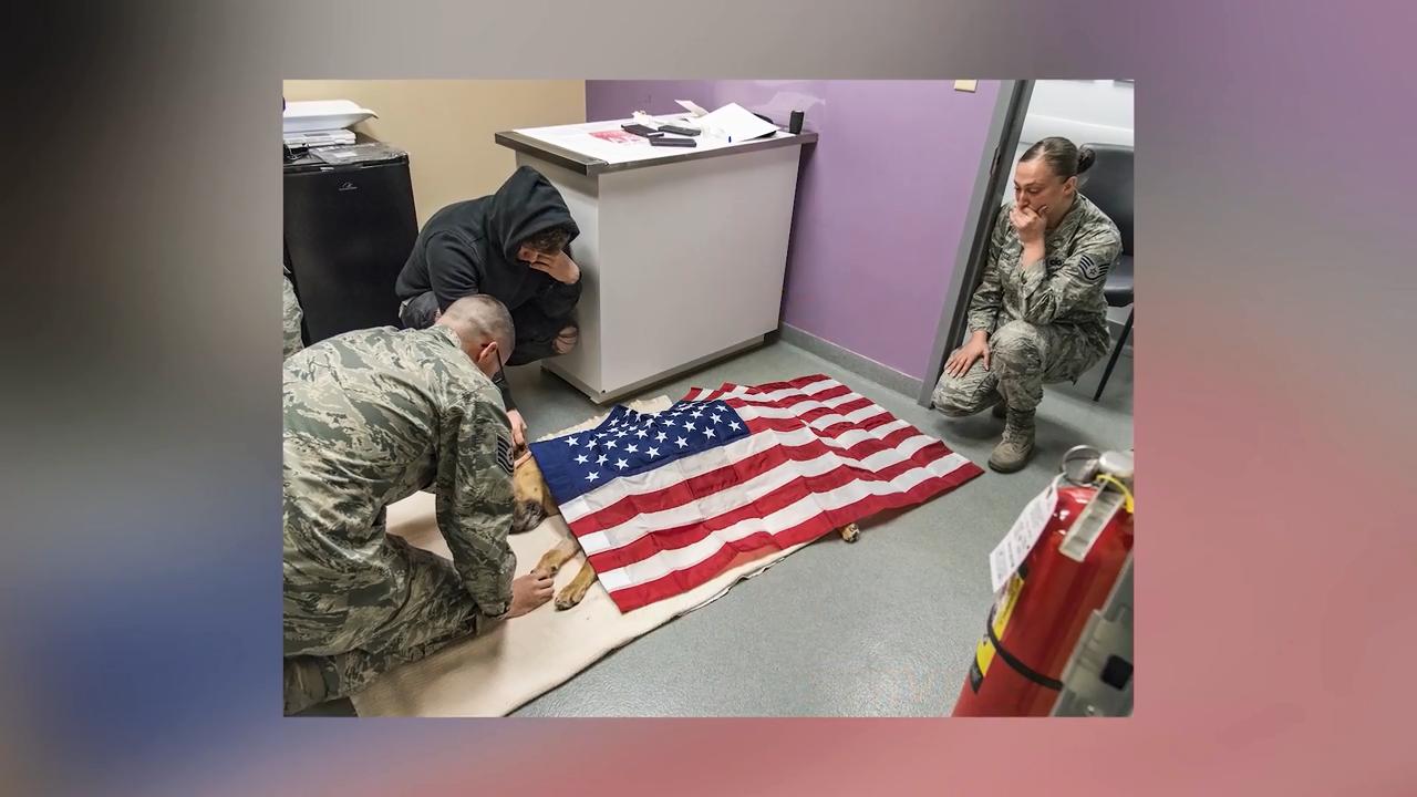 Military working dog Rico takes his final breath after being honored at his "Last Call" event. Accompanied by his handlers