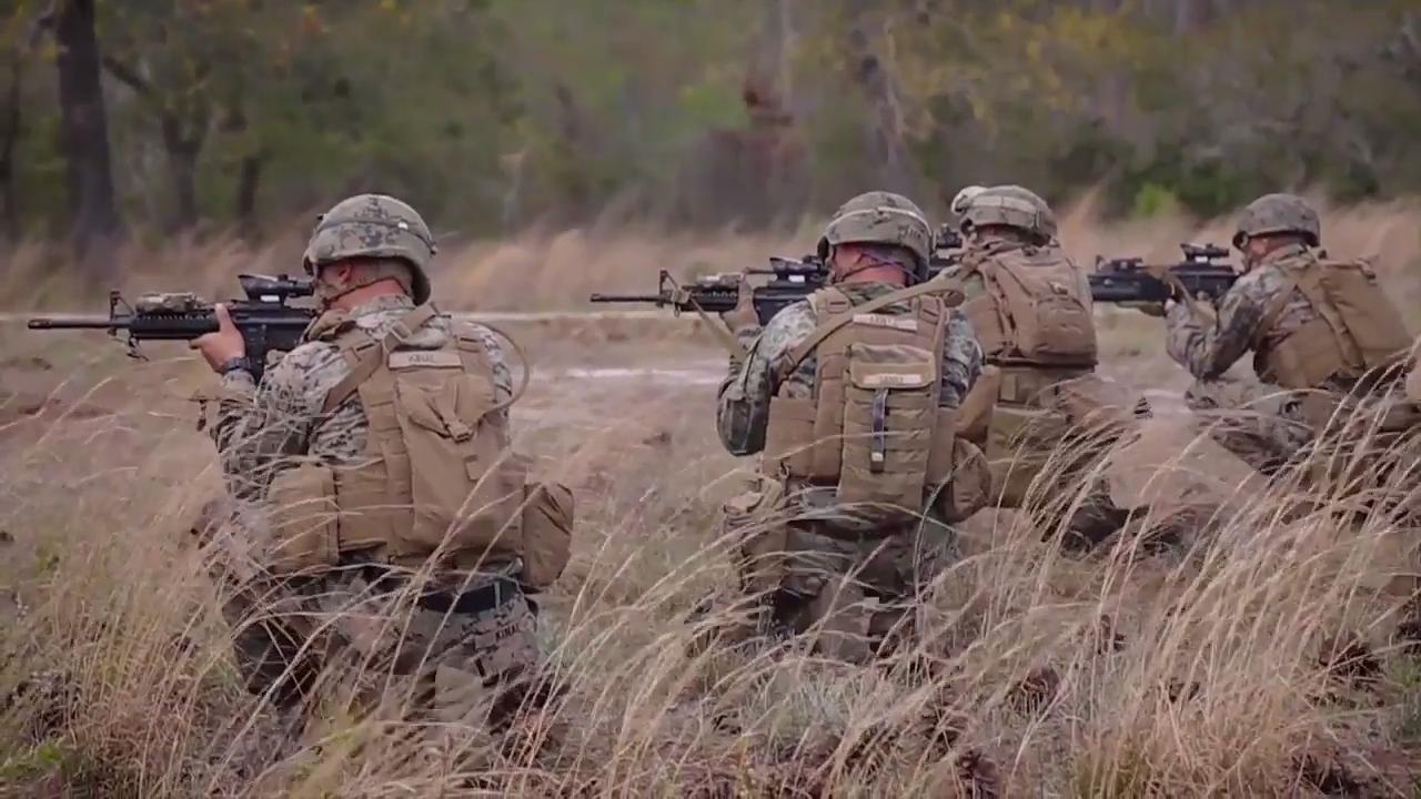 U.S. Marines attached to Advanced Infantry Training Battalion, School of Infantry-East (SOI-E), conduct a combined arms exercise at Camp Lejeune