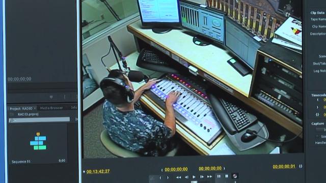 Sgt. Susan Noga, a radio operations instructor at the Defense Information School, teaches students how to write and produce newscasts