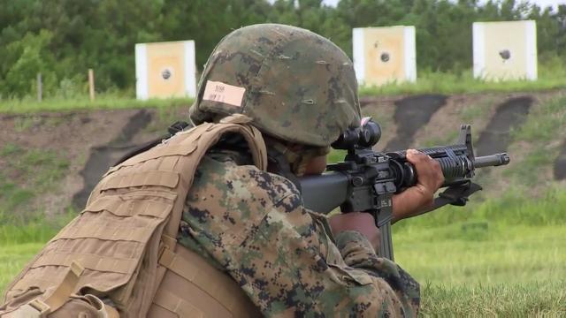 U.S. Marine Cpl. Tyler Stoney, a tower non-commissioned officer with Weapons and Field Training Battalion, speaks about U.S. Marine Recruits