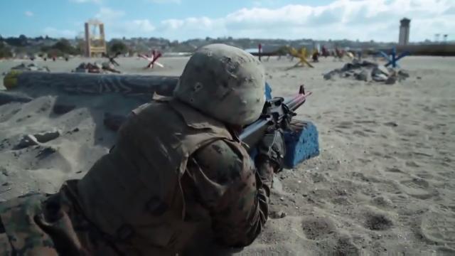 Marine Recruits run through a combat obstacle course, and bayonet charge at Marine Corps Recruit Depot San Diego.