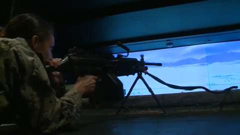 An Army CST Class practiced firing a variety of rifles and automatic weaponry at an indoor range using computer simulations.