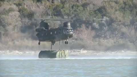 A CH-47 Chinook Helicopter with the 291st Aviation Training Battalion conducts bridge movement and drop training with the 74th MRBC.