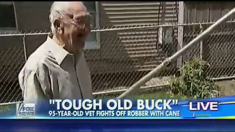 Police say a 95-year-old World War II veteran used his cane to fight off a would-be robber in Manchester, New