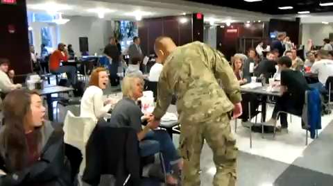After returning from deployment in Iraq, a dad surprises his daughter in her classroom. Good thing she didn't skip :-)