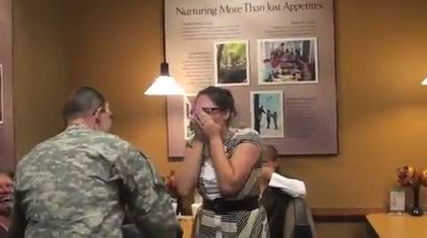She thought she was just having a normal meal at Chick-Fil-A with her family, but when her soldier husband was