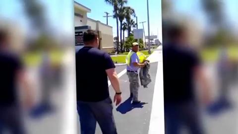 Emotionally-charged video shows the moment an angry Army veteran called out a panhandler in Tampa, Florida for faking a military