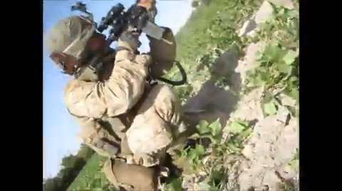 Marines come under attack from Taliban fighters hiding in the trees, which is met with a lot of return fire