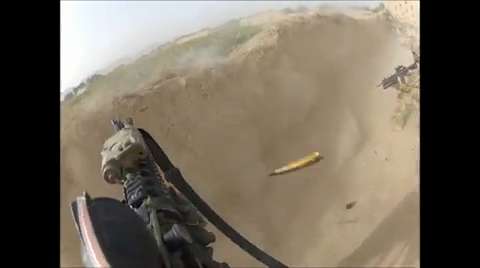 US Troops take small arms fire while setting explosives down on a main charge of an IED in Afghanistan.