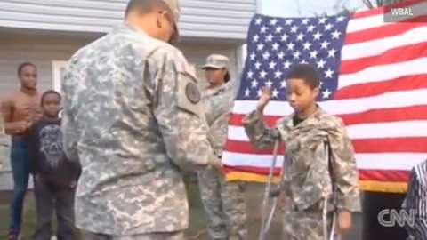 A Baltimore boy with terminal cancer who has always wanted to be a soldier got a huge surprise from the