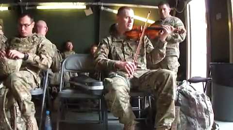 Before getting on a flight to Afghanistan, a Soldier plays a stirring rendition of 'Ashokan Farewell'. The tune was used