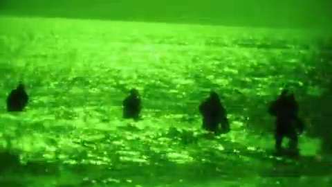 Members of the Army National Guard's 3rd Battalion, 20th Special Forces Group (Airborne) combat dive team helo-cast at night-time in