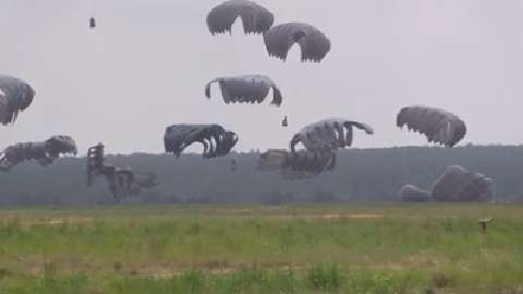Crescent Reach 2015 Air Drop - C-17 and C-130 airdrop of paratroopers from the Army 82nd Airborne Division.