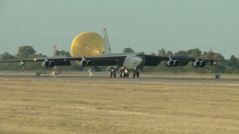 Various footage of B-52 Bombers taking off, landing, going on bombing runs, and being refueled.