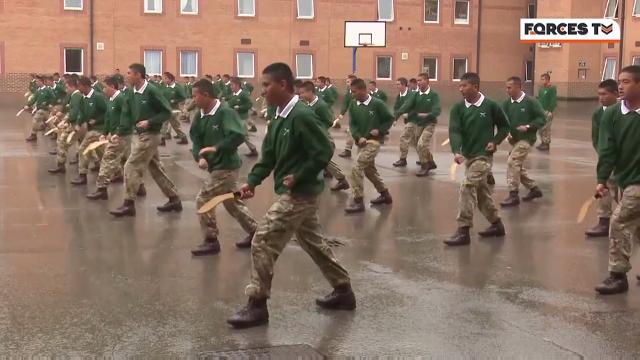 British Army Gurkha recruits learn how to use their Kukri knife.