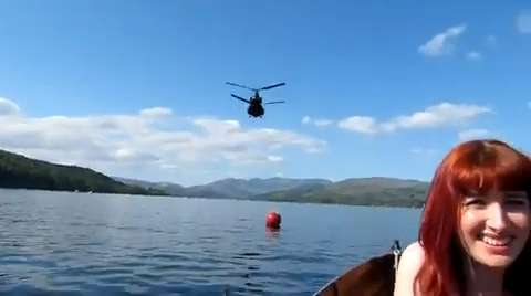 Two CH-47 Chinooks do awesome flyover. Looks like a great day at the lake.