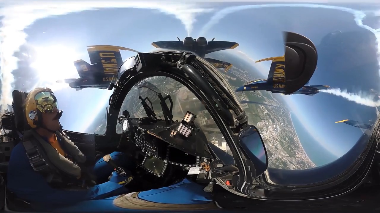MYRTLE BEACH, S.C. (April 27, 2018) A 360 degree view shows the Blue Angels Diamond formation performing a half squirrel