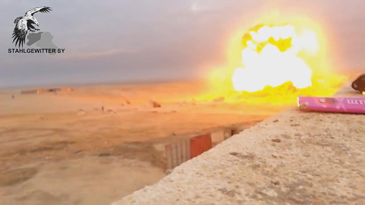 An obviously failed ISIS VBIED attack on a position of Iraqi forces west of Mosul. The attack is resulting in