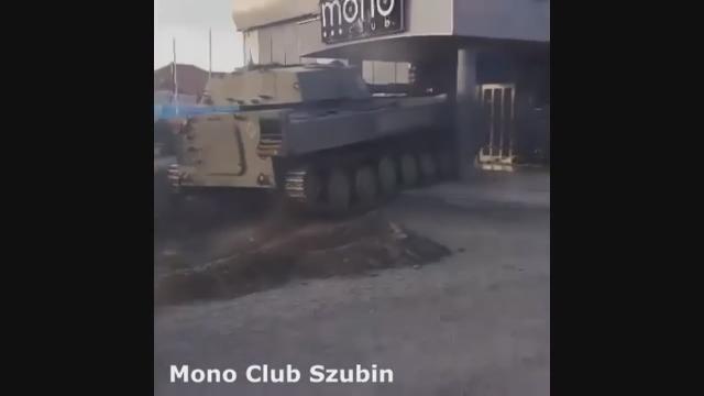 A 120mm mortar round misfires during a test firing. Nearby soldiers run to take cover but fortunately the round doesn't