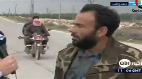 FSA militant gets slammed by a truck during an interview in Syria. Driver doesn't seemed too concerned.