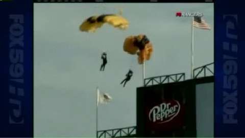 8/25/2010 - US Army Ranger gets stuck on a flagpole at Rangers Ballpark.