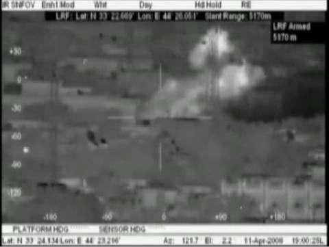 Five insurgents engaged in Baghdad, Iraq. Strike occurs at the 1:00 mark.