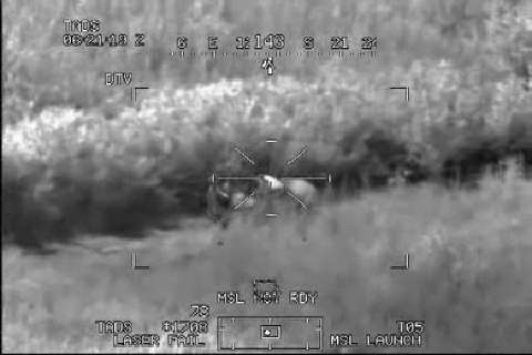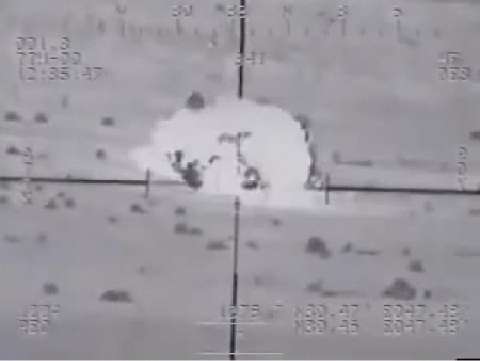 Skip to the 0:14 sec mark for the action. Dead on FLIR TOW shot! And they keep on raining down
