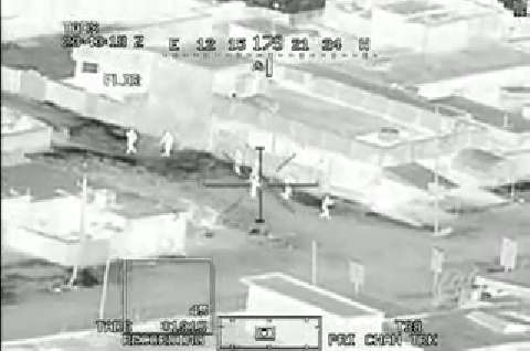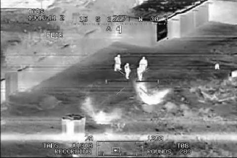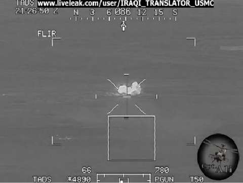 AH-64 gunship takes out IED emplacement team with a hellfire missile in Iraq.