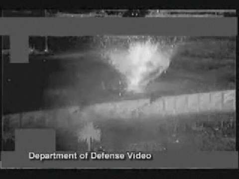 Coalition UAV catches insurgents testing an IED near Fallujah. Troops search the insurgent hideout, finding chemicals, munitions and other bomb-making