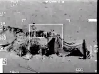 A group of armed enemy combatants are obliterated by a US helicopter gunship in Iraq.