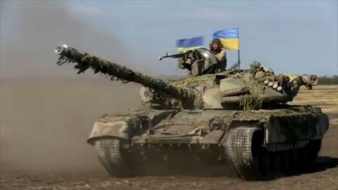 Ukrainian DNI forces fire a SPG-9 recoiless gun.
