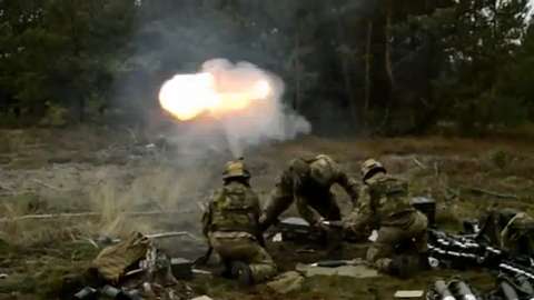 Ukrainian troops try to take the edge off with a little humor during a firefight. Listen as they joke and