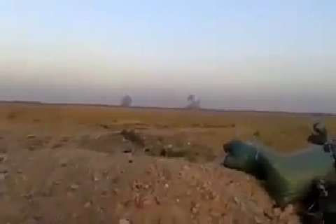 An air strike targeted Islamic State group militants on Thursday who were standing near their flag on Tilsehir hill in