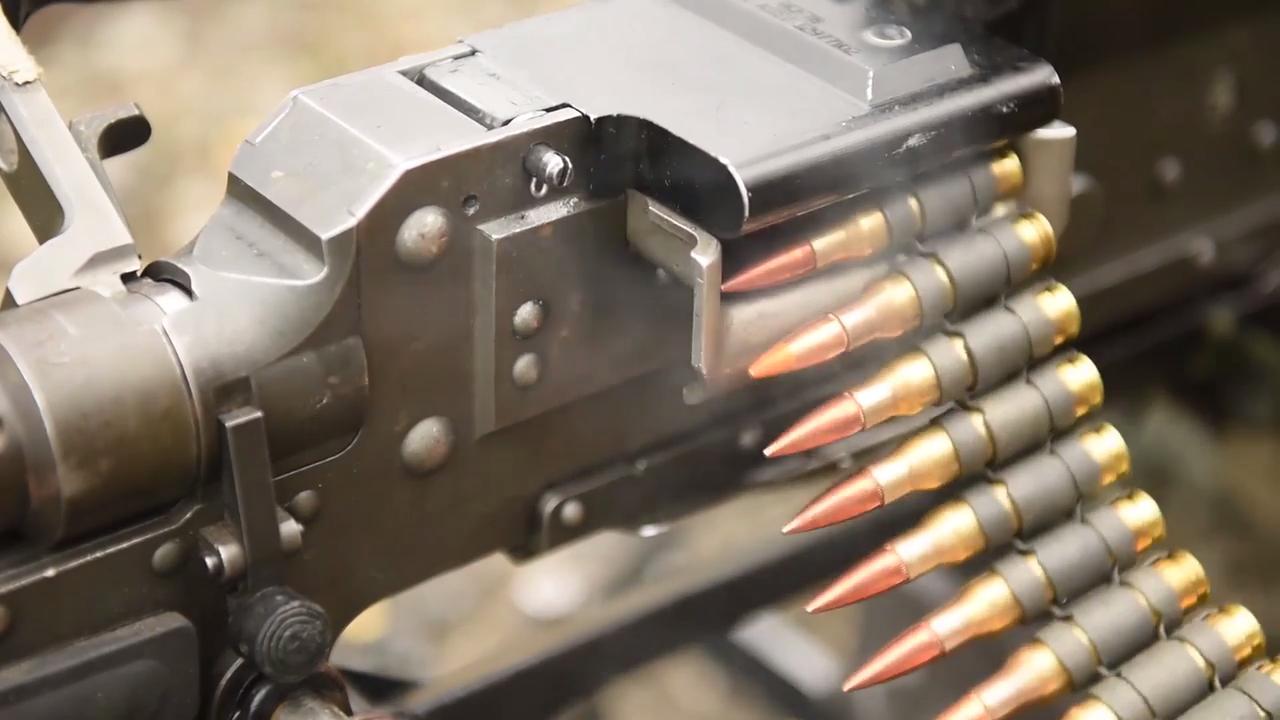 Close up footage of ammunition, the M249 Squad Automatic Weapon and the M240B machine gun during a qualification range in